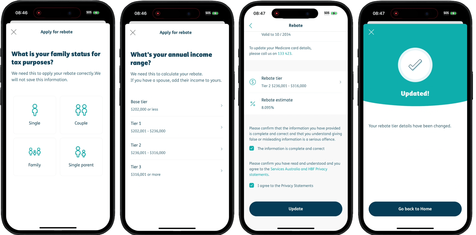 Simple steps to check or change your Private Health Insurance rebate details online or through the HBF App.